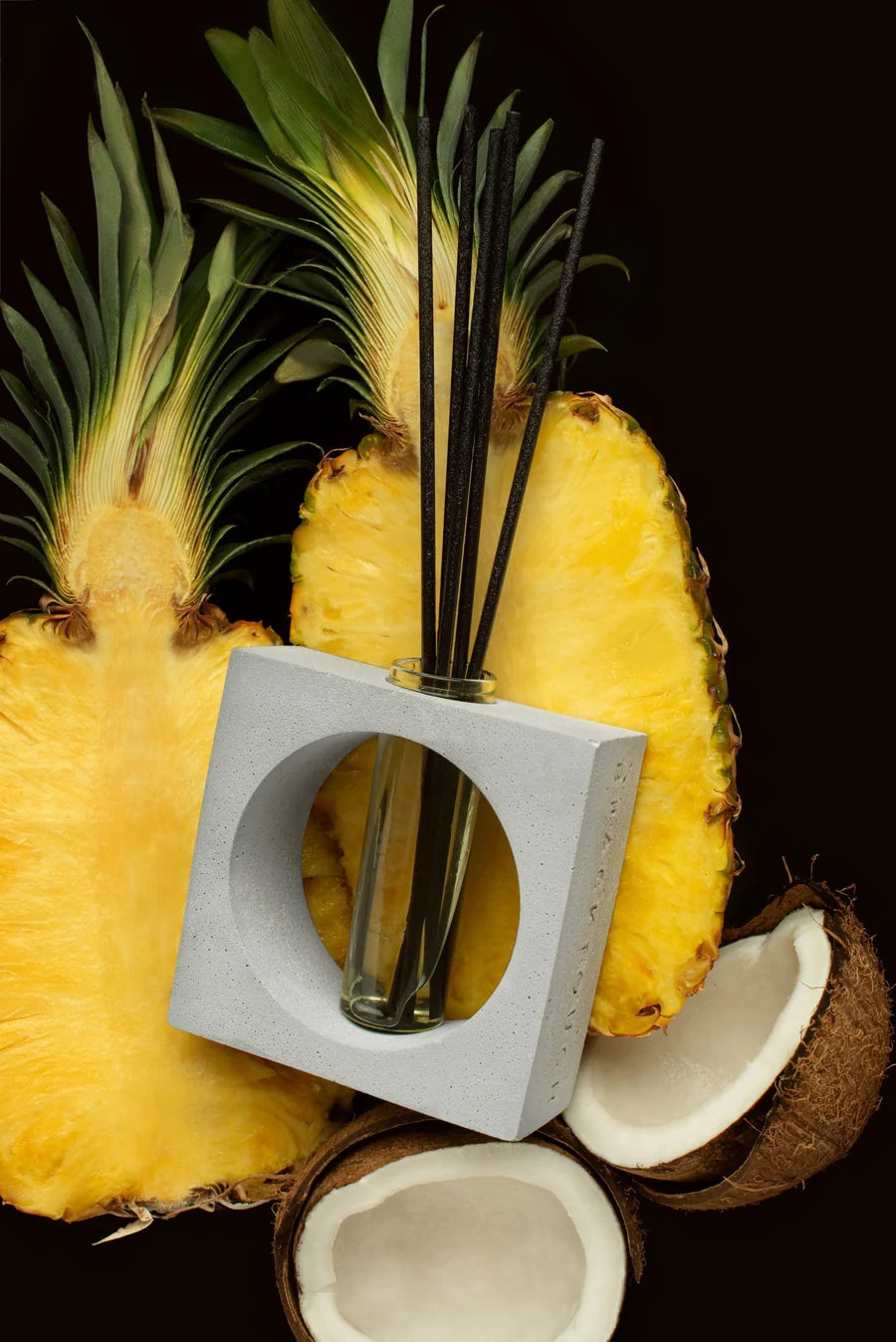 Juicy Nirvana. Ось що звільнить простір від сірості, а тебе — від поганого настрою. Тут лимон, цедра апельсина, мандарин та кокос з ананасом, здається, перетворюють повітря на тонізувальний коктейль. Вдихаєш його й починаєш відчувати, як сповнюєшся енергією й натхненням. З ним навіть фарби твого житла здаються яскравішими. А ще оціни автентичний дизайн аромадифузора — бетонна підставка, прозора колба, чорні палички й нічого більше. Бо прагнемо, щоб він пасував твоєму дому!