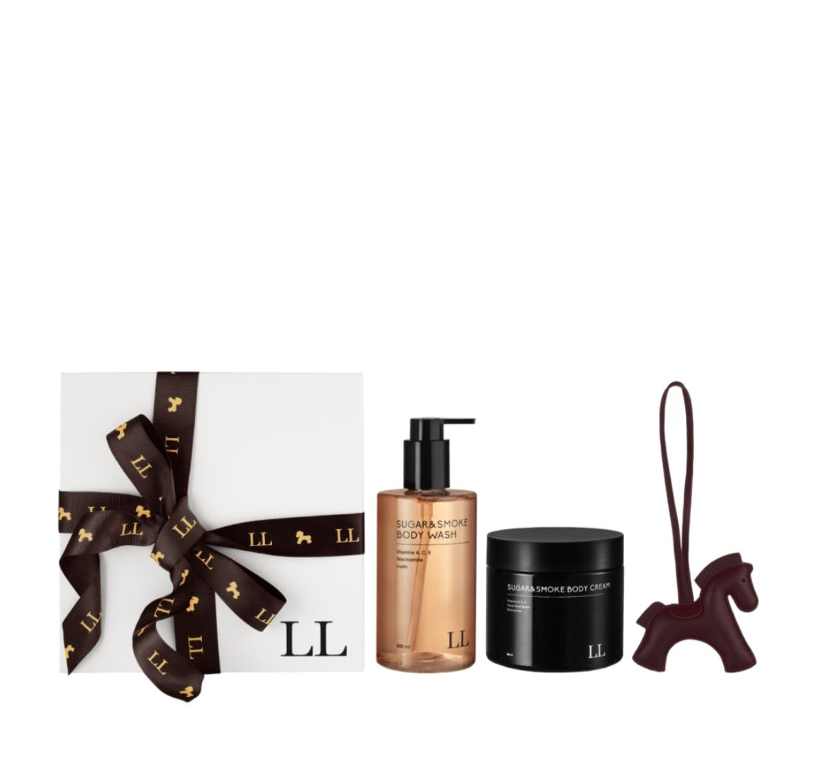Розкішний подарунок для тих, хто обирає витонченість та елегантність. Аромат Sugar & Smoke створений для особливих моментів: ноти коньяку, ванілі та деревних акцентів. У наборі — гель для душу та крем для тіла, що огортають чуттєвим ароматом, а також шкіряна підвіска з конем — символ сили й гармонії. Це подарунок, який залишає враження довше, ніж свято.