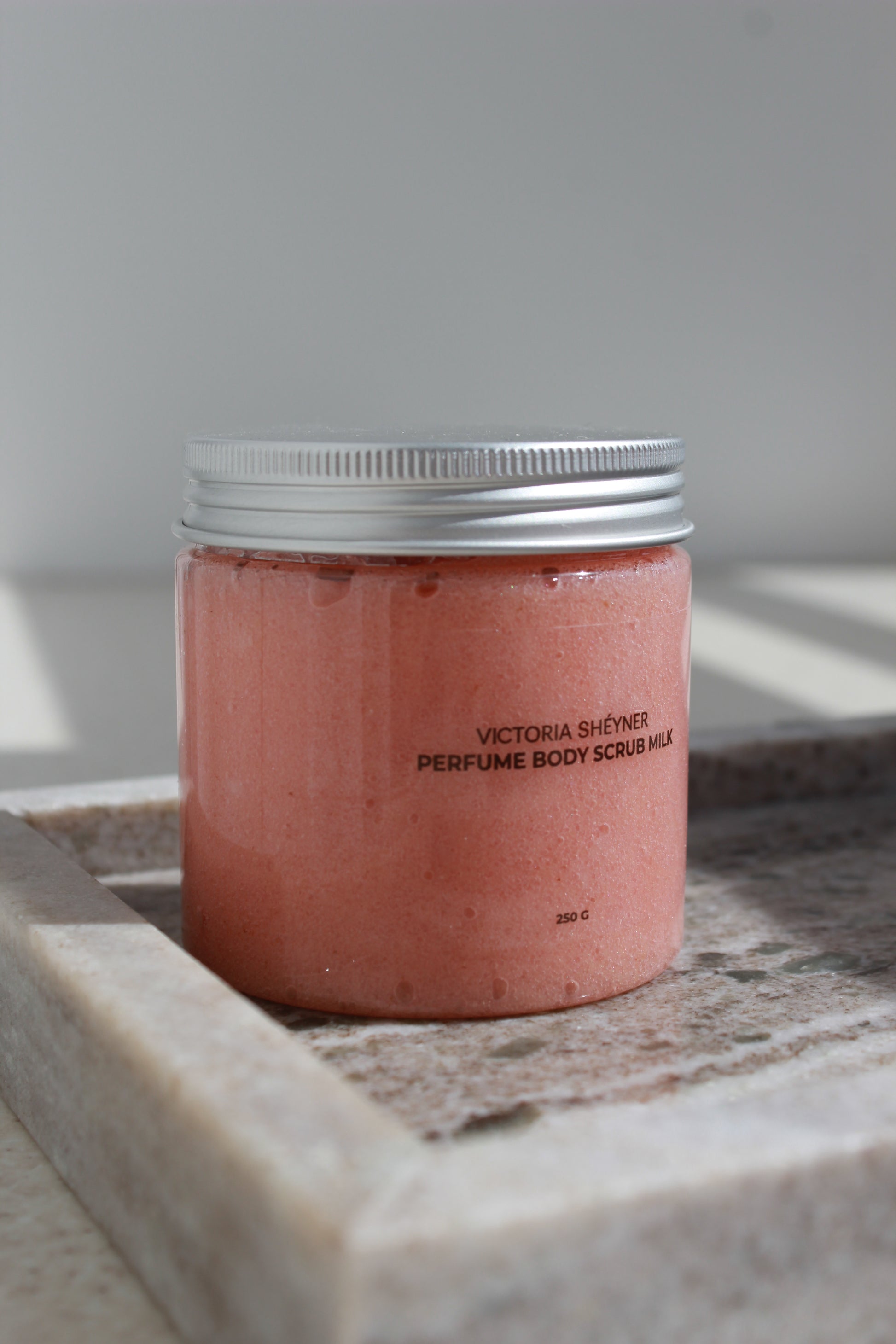 PERFUME BODY MILK SCRUB – мʼякий очищаючий парфумований продукт для шкіри тіла, шиї, зони декольте, ліктів, компоненти якого делікатно шліфують та оновлюють верхній шар епідермісу від омертвілих клітин, збагачують корисними мікроелементами.